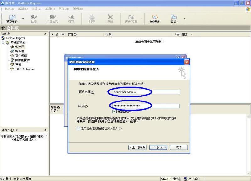 選擇"POP3"並輸入你的內收郵件伺服器地址 (請參考你的客戶歡迎電郵)